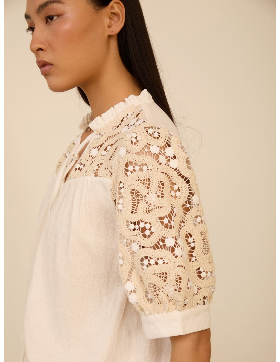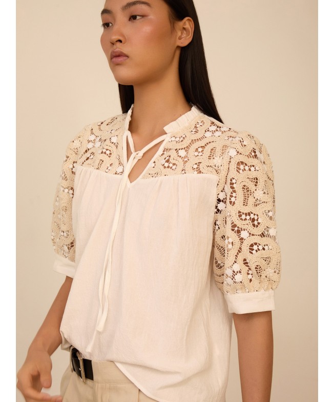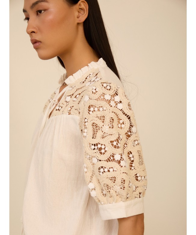 Blusa manga corta abullonada crochet