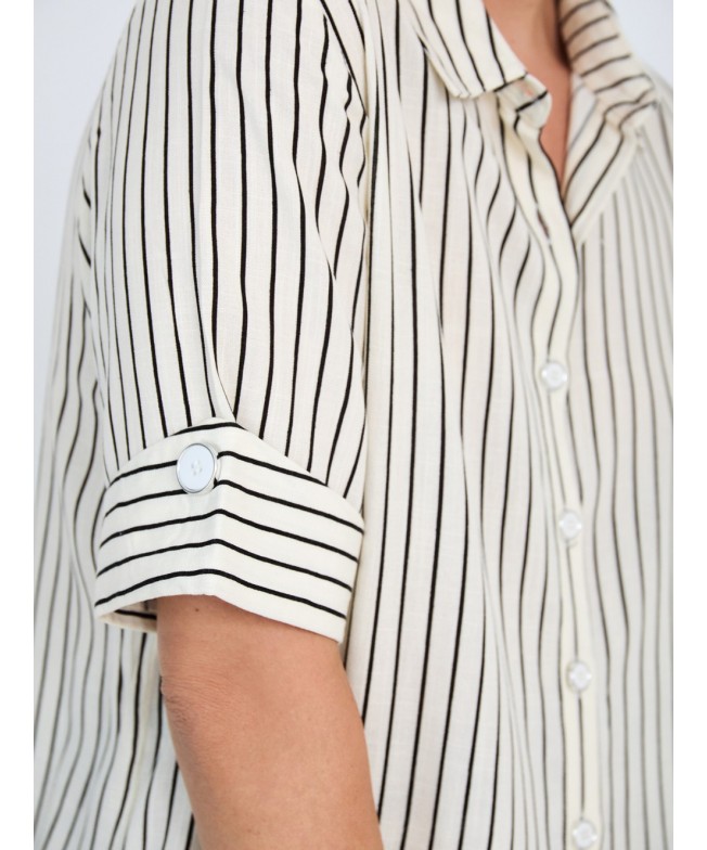 Camisa estampada rayas.cuello camisero, manga corta con dobladillo y botones.