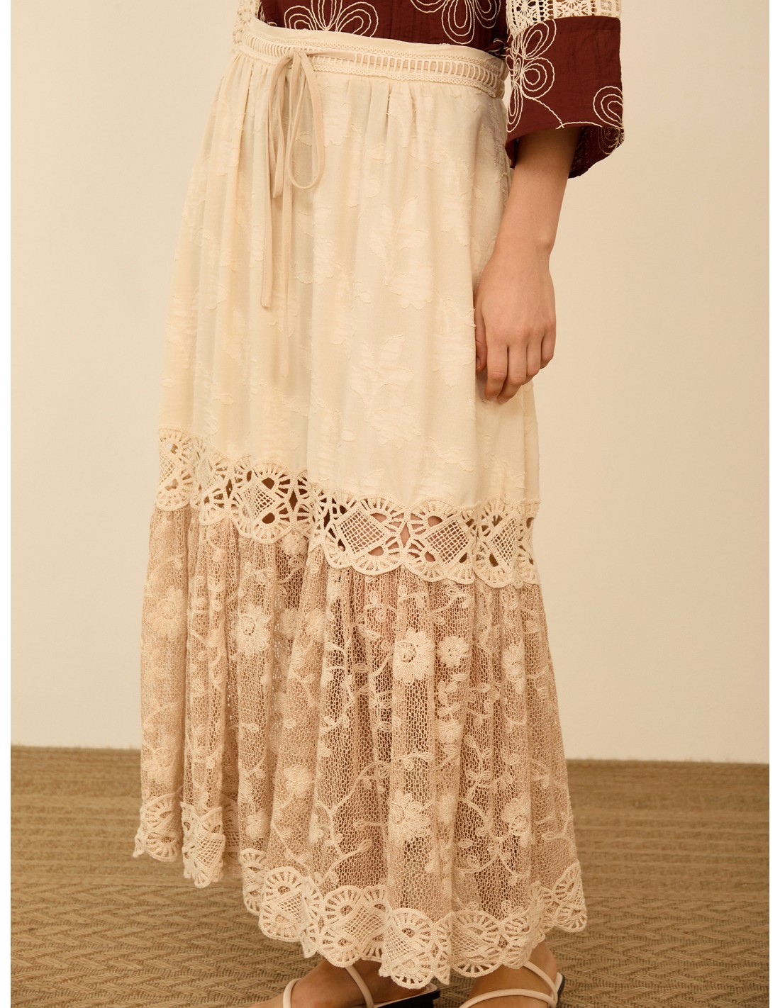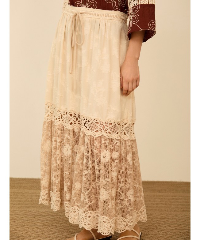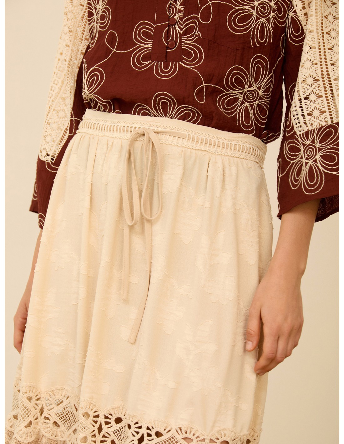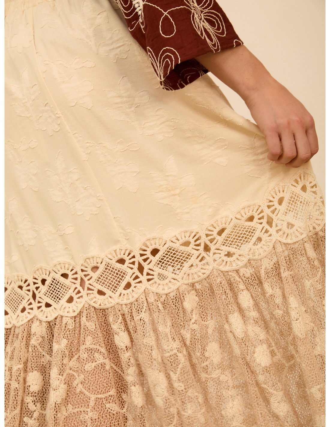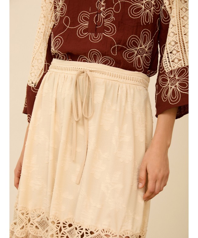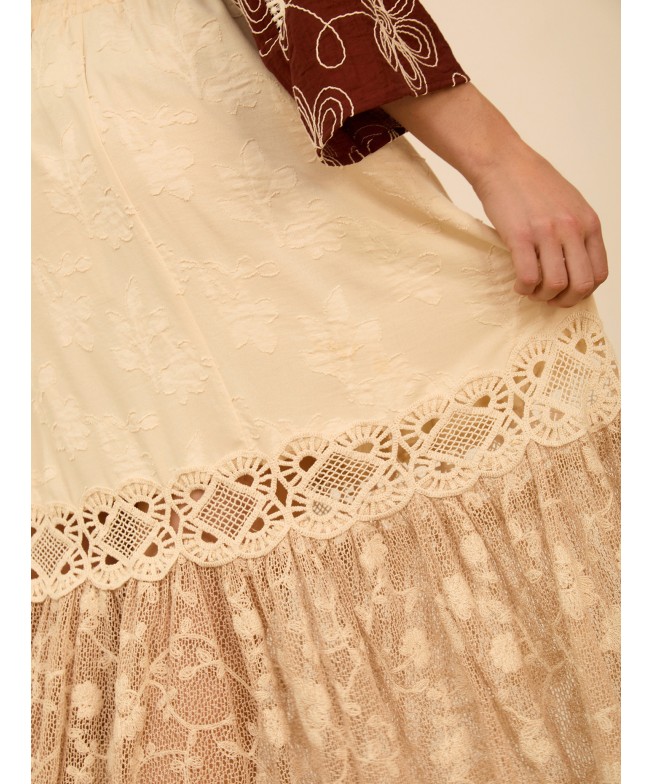 Falda midi con encaje bordado